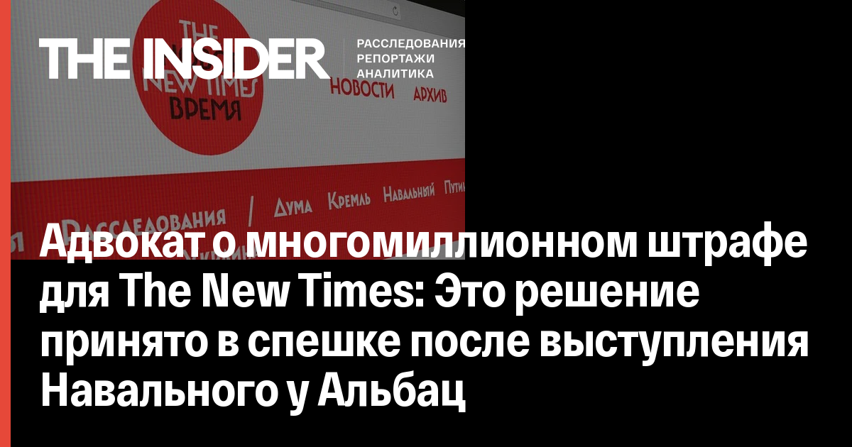 Адвокат о многомиллионном штрафе для The New Times: Это решение принято в спешке после выступления Навального у Альбац