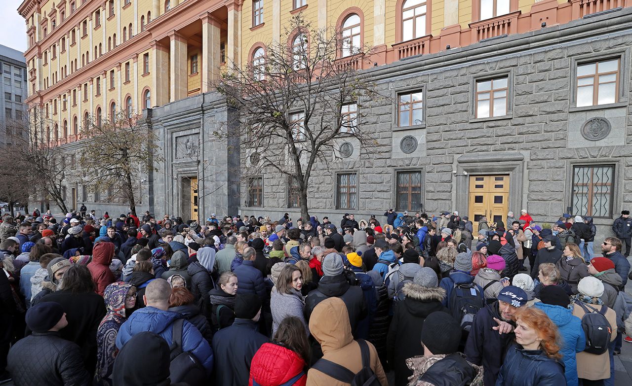 В Москве и Санкт-Петербурге задерживают участников акции в защиту фигурантов дел «Нового величия» и «Сети». Фотографии и видео