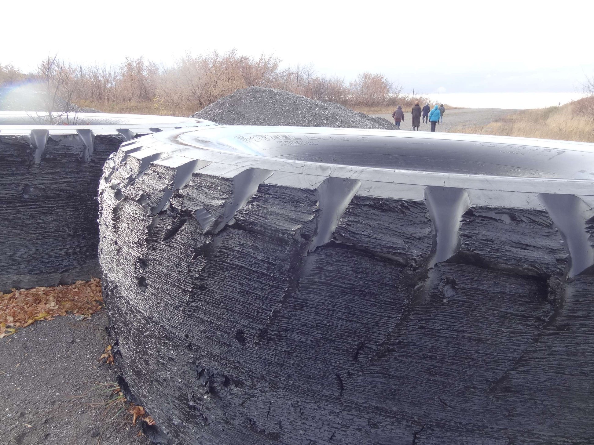 Мы были практически в дождь, и наверное, в сухое время пыли здесь намного больше. Кроме того, в одном месте уголь просто горел, и едкий дым разносился ветром. А всего в нескольких сотнях метров поселок Бачатский. В нем живут люди, и этот пресс они ощущают всегда. Плюс взрывы, которыми крошат породу, плюс разбитые дороги от более легких, чем БелАЗы, но все равно разрушительных для асфальта тонаров. Угольщики часто экономят на создании технических дорог и убивают местные, не заботясь ни о чем.