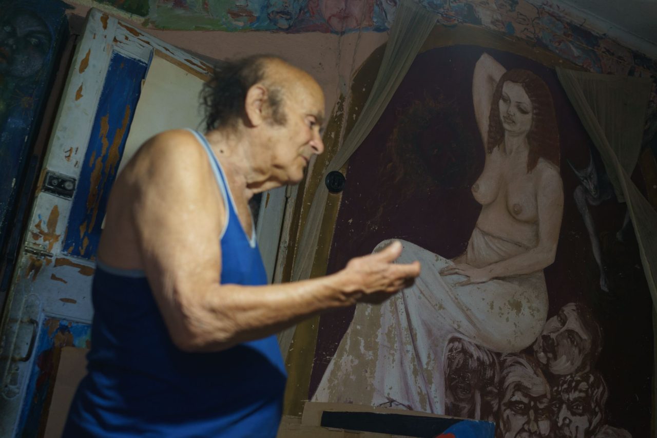Аркадий Давидович в мастерскойФото: Кристина Бражникова для ТД Мы поднимаемся от водохранилища в город, в ту самую коммуналку, которую получили Фрейдберги после войны и украсила сотнями афоризмов Золотых. С недавних пор ей принадлежит не только роспись на стенах, но и весь музей. Дарственную на имя художницы Давидович оформил после того, как выяснилось, что у него не видит один глаз и «два с половиной рака». «Половиной» афорист называет кисту у зуба.