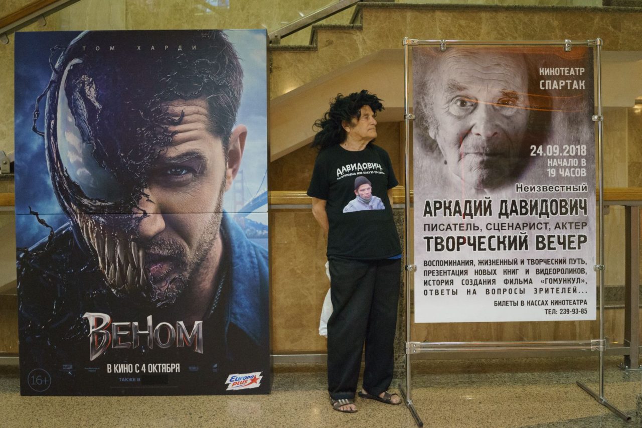 В полутемном зале кинотеатра хохот. Про ложу и галактику кричит, разумеется, Аркадий Филиппович — он сидит за столом на сцене, рядом невозмутимая девушка-ведущая. Так проходит первый за долгую жизнь афориста творческий вечер, и, несмотря на классический формат «встречи с поклонниками», Давидович верен себе. Как и поклонники — еще до начала вечера за дверями зала кто-то требовал: «Пустите, я внебрачный сын Давидовича». Сейчас в зале сидит примерно 100 человек, половине из них на вид не больше 30.