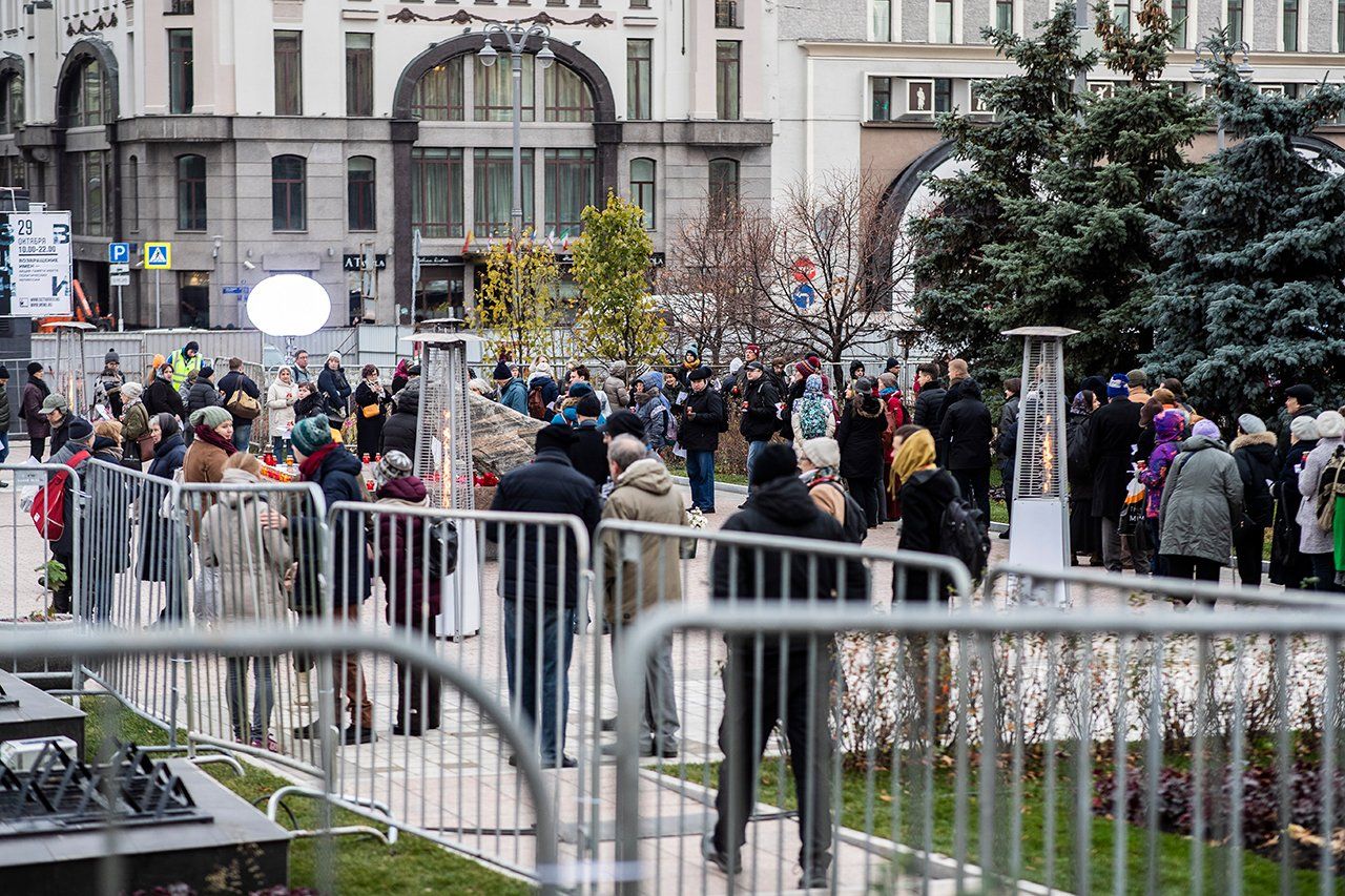 On October 29, Moscow holds its annual “Returning the Names” commemoration at the Solovetsky Stone in Lubyanka Square, across from what used to be the KGB's headquarters. The monument itself is made up of a large stone from the Solovetsky Islands, from the Solovki Gulag prison camp. Throughout the day, people come to remember and read aloud the names of victims in the Soviet Great Terror.