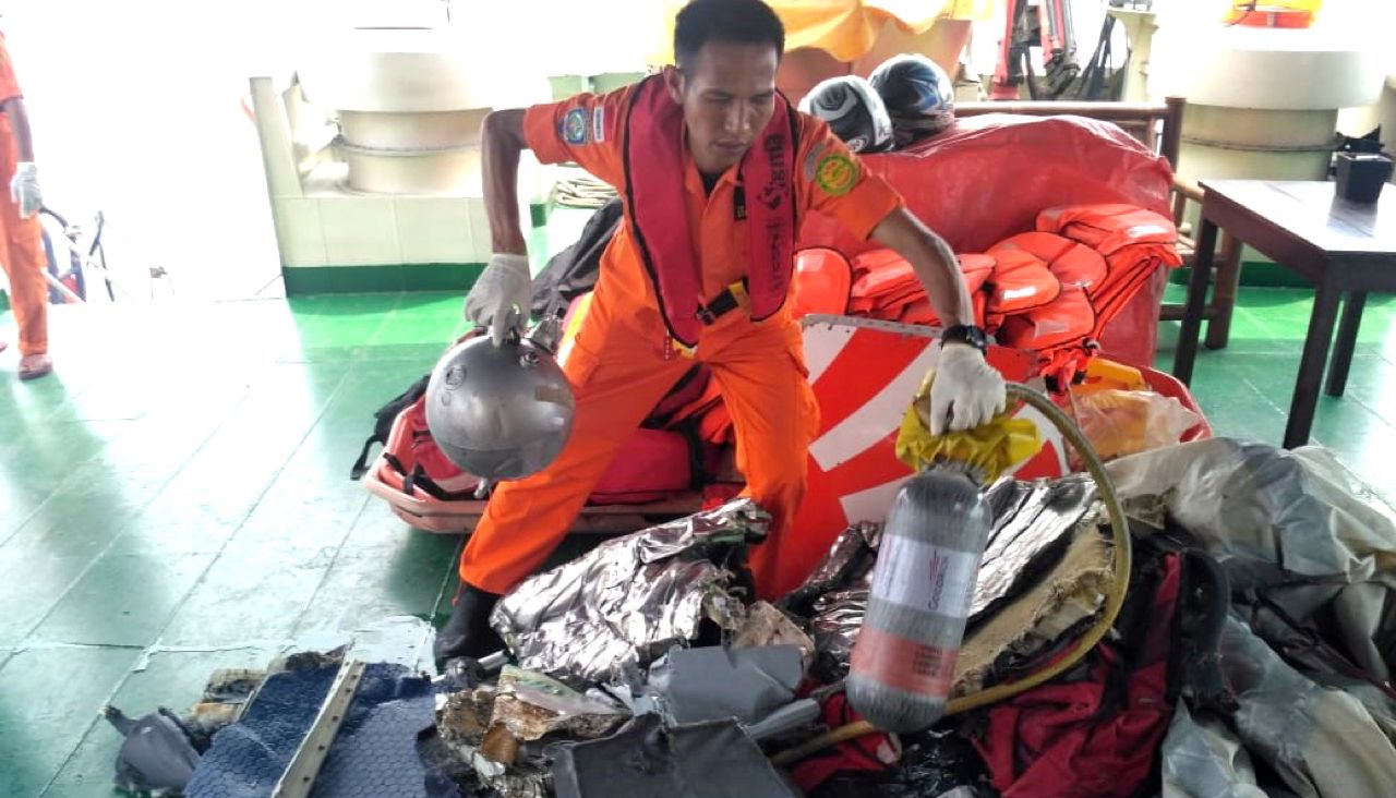 На месте крушения обнаружены обломки самолета и личные вещи пассажиров. Участники поисково-спасательной операции нашли спасательные жилеты, сиденья самолета, наушники и мобильные телефоны в двух милях от предполагаемого места падения лайнера, вблизи морского нефтеперерабатывающего завода. Представитель Национального совета по борьбе со стихийными бедствиями Индонезии Сутопо Пурво Нугрохо опубликовал в твиттере две видеозаписи, где видны плавающие обломки и нефтяное пятно.