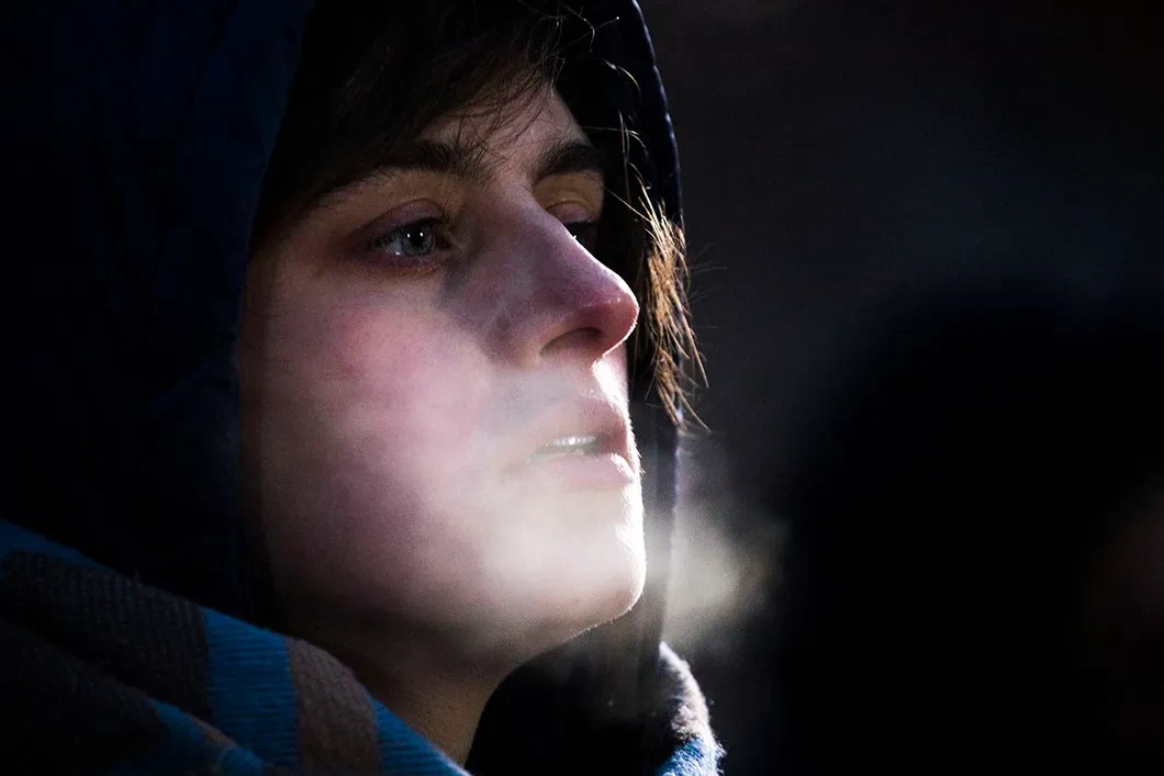 Огороженная строительным забором площадка с камнем в свечах посередине. Уличные обогреватели, белые переносные фонари, микрофон, а к нему — длинная, огибающая площадку очередь. Очень холодно, немного замкнуто, и все же — как-то тепло. Я встала в очередь в 10.15 и получила белый лист под номером 423. «Григорий Иванович Караськов, 39 лет, заместитель начальника «Союзснабосоавиахима». Расстрелян 27 апреля 1938 года». Я прочитала это два часа спустя, зажав свечку в варежке. Варежки достала для меня из рюкзака совершенно незнакомая мне до этого Наташа — уже не первый год участвует в акции, захватила про запас. У Наташи «только» двоюродного деда репрессировали, правда, еще родной в 37 -м сгинул, но «специфически — отправился в «Белые Столбы». Они с бабушкой тогда по адресу Новый Арбат, 35 жили, по этому адресу многие сгинувшие были прописаны.