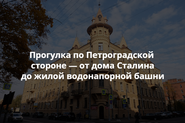 По мотивам этих писем «Бумага» составила гид для прогулки по Петроградской стороне: от здания, где в 1917 году жил Иосиф Сталин, мимо готического дома-замка, до водонапорной башни, ставшей жилым домом.