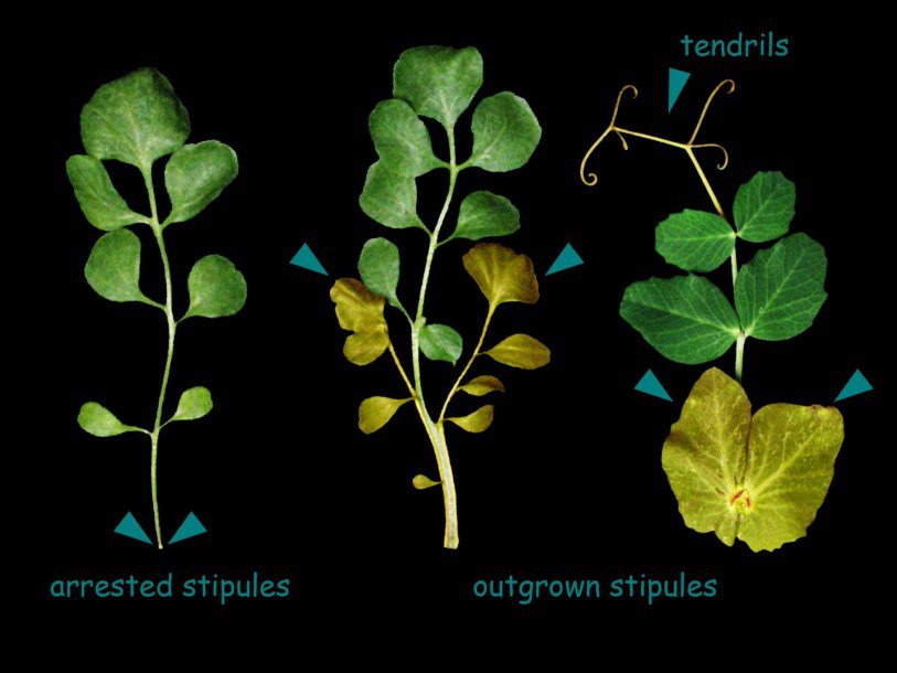 Ученых интересовали механизмы, определяющие форму разных вариантов листа у одного и того же растения. Например, у многих двудольных растений имеются прилистники – придатки в нижней части листа по обеим сторонам черешка. Чаще всего, они весьма невелики, но у некоторых растений, например, у садового гороха, размер прилистников превосходит размер обычных листьев, расположенных выше. У того же гороха имеется и еще одна форма видоизмененных листьев – усики, которые растение использует для закрепления на опоре.