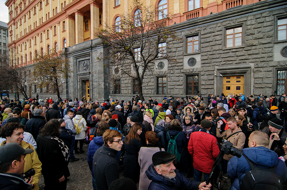 Народный сход, шествие и задержания. Как прошла акция у стен ФСБ на Лубянской площади в поддержку фигурантов дел «Сети» и «Нового величия»