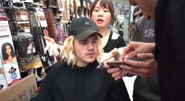 Двойник Джастина Бибера в парике. Кадр из видео Yes Theory