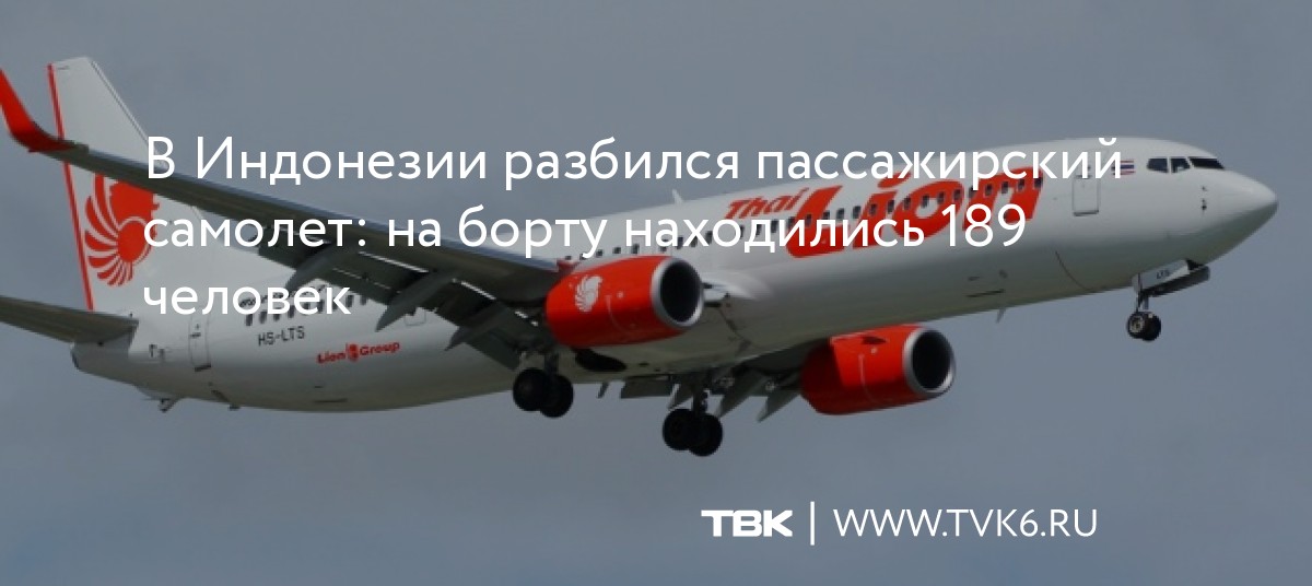 На борту находились 189 человек: 181 пассажир, 2 пилота и 6 бортпроводников, сообщает The Jakarta Post. О выживших пока не сообщается.