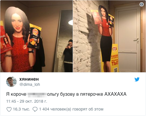 Пользователь твиттера dima_loh украл из «Пятерочки» рекламный стенд с Ольгой Бузовой. Так начался самый сумасшедший флешмоб этой осени