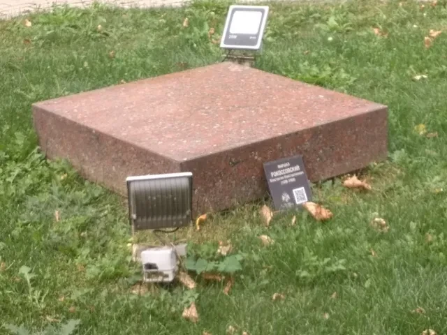 Год назад, идя на работу, я не обнаружил и Рокоссовского. На его месте до сих пор осталась лишь отполированная квадратная плита, причем бережно сохраненные фонари подсветки, направленные с четырех углов туда, где раньше было лицо Константина Константиновича, и табличка с именем маршала, придавали пустой плите особенно сюрреалистический вид. Для себя я это называл единственным виртуальным памятником в столице.