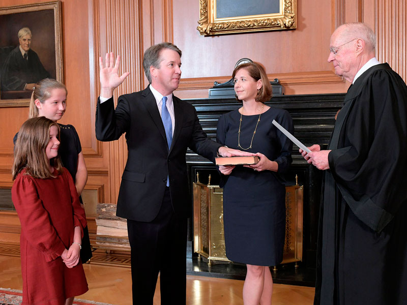 Судья Бретт Кавано приносит присягу / wikipedia.org Назначение это сопровождалось, пожалуй, самым грандиозным скандалом из всех, которые были в таких случаях. Его обвинили не только в харассменте, но и в попытке изнасилования. Америка по этому поводу раскололась. Для демократического избирателя Кавано – крайне одиозная фигура, подтверждение их худших подозрений, для них он не только консерватор, но еще и почти насильник. Для республиканского же избирателя, во всяком случае для абсолютного большинства таких избирателей, это клевета. Это интриги демократов, чтобы не допустить преобладания консерваторов в Верховном суде.
