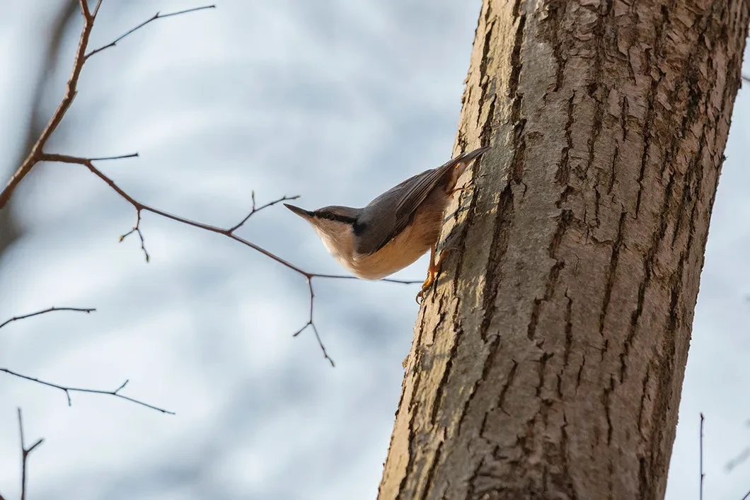 Если зима ровная, то птицам хватает насекомых, которых они успевают найти в микроукрытиях, но при внезапном похолодании расход энергии резко возрастает. Вот, кстати, наша обычная большая синица обедает. Если слышите такое грустное «фью… фью…» — это снегири, они тоже уже прилетели. Так, стоп! — доктор биологических наук задрал голову к небу. — Это ворон. «Крру, крру». И вот второй. Прекрасно. Переговариваются. А вот и поползень, особенность которого в том, что он может шастать по стволу еще и вниз головой. А вон, видите — тень промелькнула? По голосу сразу понятно, что это наш самый обычный большой пестрый дятел.
