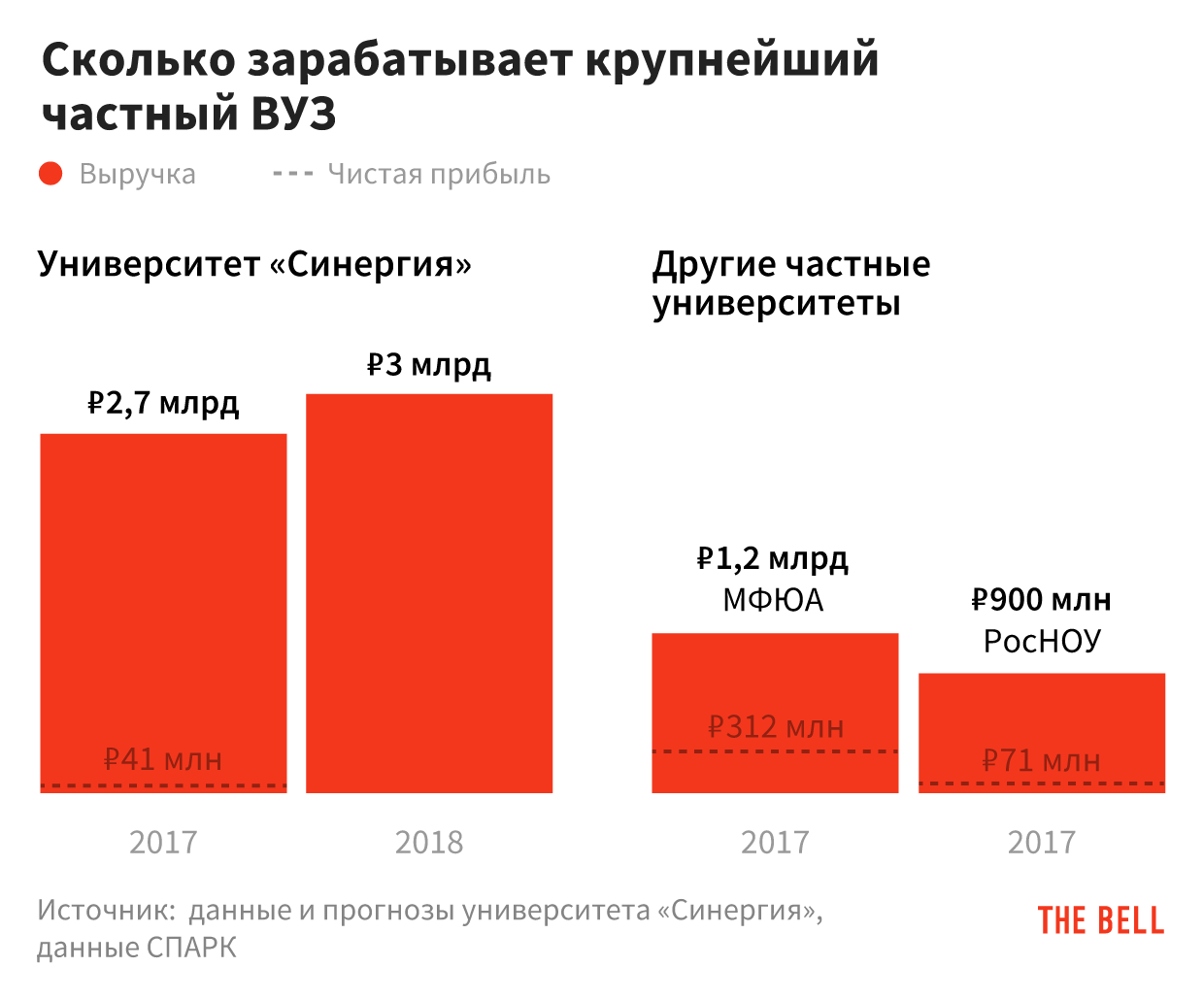 The Bell узнал, как группа «Синергия» стала крупнейшим частным вузом в стране. По всем законам сетевого маркетинга компания продает свои образовательные программы силами собственных студентов, набирает новых учеников везде, где только можно, — от школ до исправительных колоний, и активно поглощает конкурентов. А на рекламу ее образовательных программ работает батальон селебрити — от «лучшего в мире бизнес-коуча» Тони Роббинса до писателя Нассима Талеба и боксера Майка Тайсона.