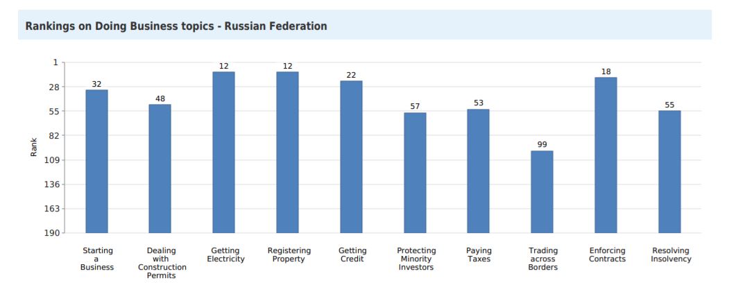 - Работавший с 2014 по 2017 год в Минэкономразвития экономист Кирилл Тремасов называет Doing Business «достаточно техническим рейтингом»: «делаешь те или иные изменения в регламентах и процедурах, и страна поднимается». Работу этих изменений на практике и, например, влияние коррупционных факторов Всемирный банк не учитывает, поясняет он.