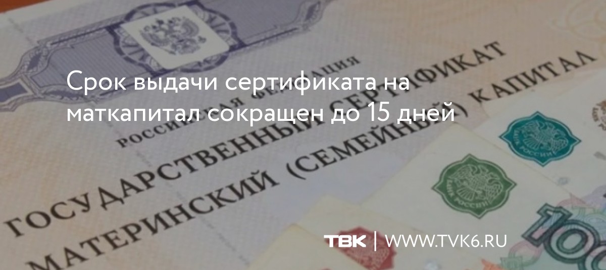 Срок выдачи сертификата на маткапитал сокращен до 15 дней