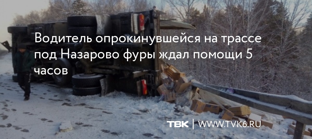 Водитель опрокинувшейся на трассе под Назарово фуры ждал помощи 5 часов