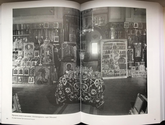 Продажа икон в магазине «Антиквариат». 1936. Фотография из книги Елены Осокиной Сама ситуация — продажа из музеев — противоположна всем мыслимым в европейской культуре представлениям о «наследии», которое всегда подразумевает максимальную аккумуляцию и концентрацию «добра» в национальных хранилищах. Но логика музейного отбора всегда имплицитно содержала и другую, противоположную, установку — хранить всю дифференциацию по категориям и уровням.