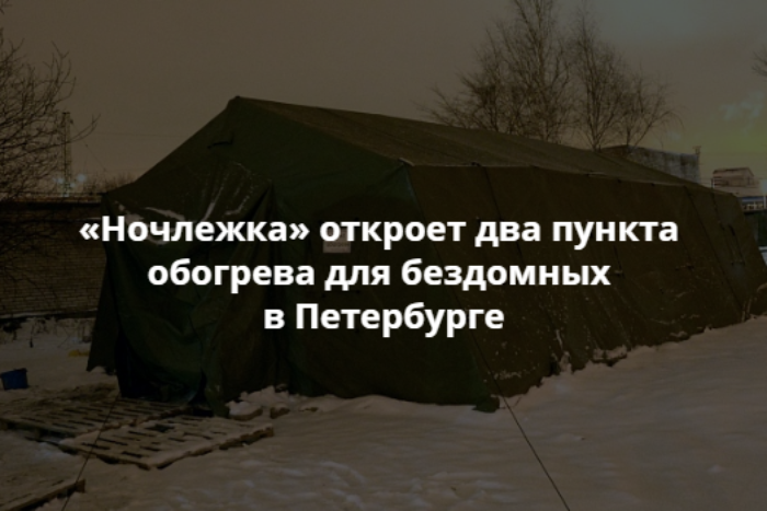 Петербургская благотворительная организация «Ночлежка» откроет в городе еще два пункта обогрева для бездомных. Это произойдет вечером 1 ноября, сообщает пресс-служба организации.