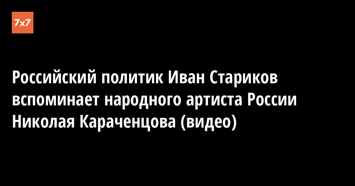Российский политик Иван Стариков вспоминает Николая Караченцова.