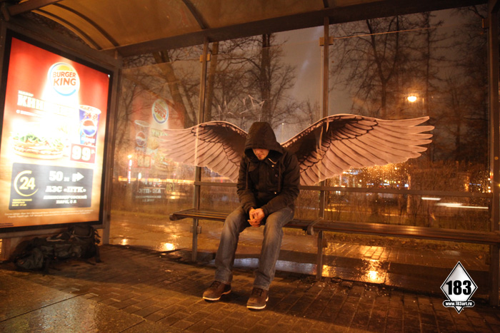 На остановке нарисовали крылья, «превращающие» в ангелов