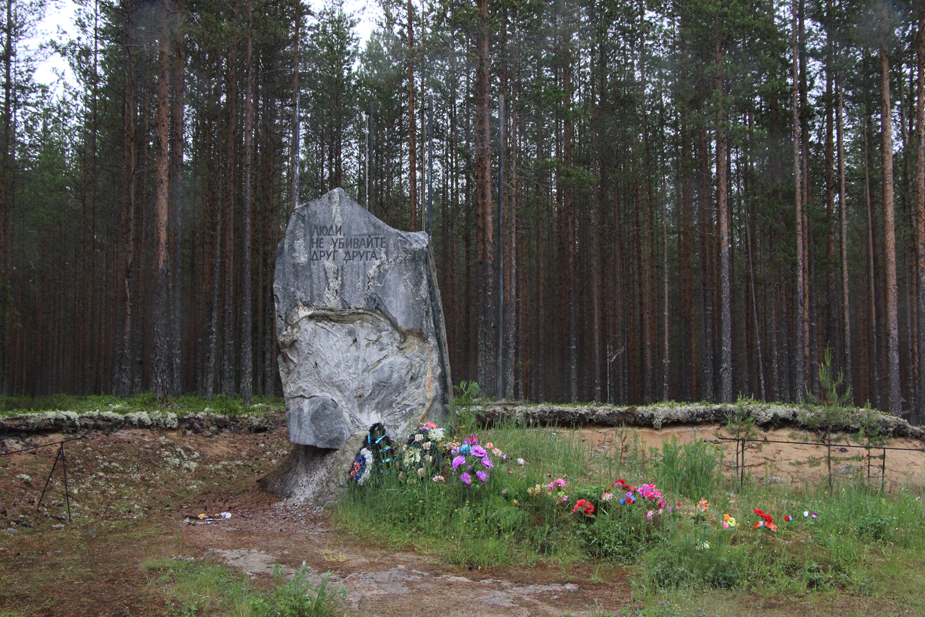 Историй с похожим финалом мемориал в Сандармохе хранит множество — более 7 тыс. человек были расстреляны в этом лесном массиве в 1937–1938 годах. Почти 60 лет это место искали родственники жертв репрессий, исследователи, историки, краеведы. В 1997 году расстрельные ямы НКВД обнаружила совместная экспедиция общества «Мемориал» из Санкт-Петербурга и Карелии. Тогда же здесь появились первые памятные знаки. Монумент с надписью «Люди, не убивайте друг друга» установили на первую годовщину открытия Сандармоха в 1998 году. А после публикации в 2002 году книги «Поминальные списки Карелии» — труда карельского исследователя Юрия Дмитриева — с именами жертв Сандармоха, столбики с именными табличками с фотографиями или просто фамилиями репрессированных стали устанавливать на территории мемориала ежегодно. Таких столбиков в Сандармохе можно насчитать несколько сотен, а еще — пару десятков монументов, памятных плит и скульптур от диаспор разных национальностей, представители которых были расстреляны в урочище.