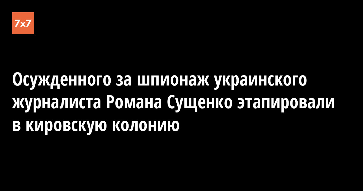 Журналист информационного агентства «Укринформ» Роман Сущенко этапирован в колонию №11 в Кирово-Чепецке, сообщил на странице в Facebook 7 ноября его защитник Марк Фейгин.