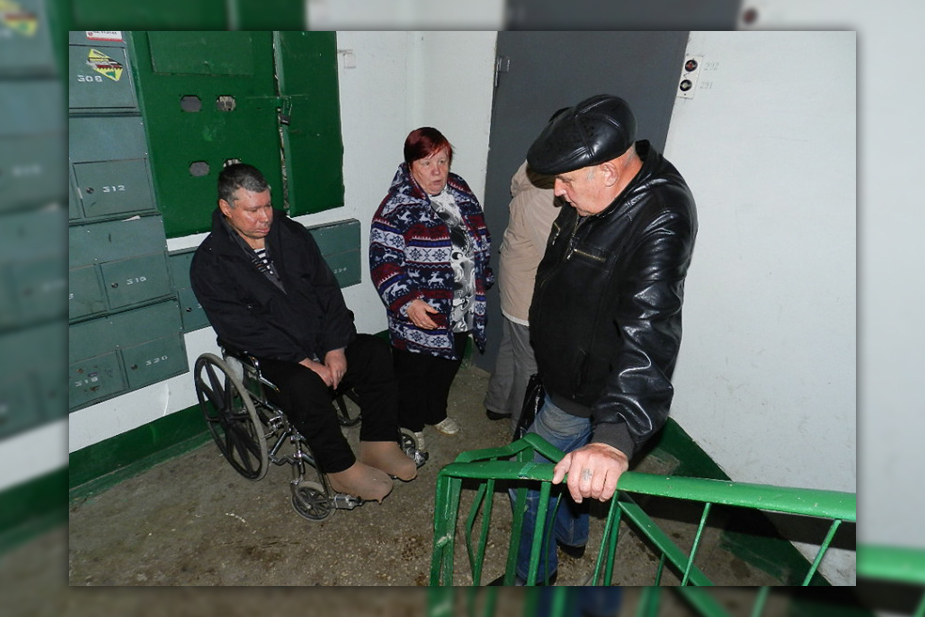 Владимир Ширков страдает врожденным заболеванием, которое начало развиваться у него в зрелом возрасте. Он живет в просторной квартире на последнем этаже девятиэтажного дома, но не может без помощи нескольких соседей выбраться на улицу, потому что при выходе из подъезда ему нужно преодолеть пять ступеней. В мае специальная комиссия обследовала подъезд и вскоре сообщила Ширкову, что в этот день его не было дома — комиссия не смогла обследовать его квартиру. Инвалид возмутился ложью чиновников и сообщил об этом в «7x7» — председатель ТСЖ Надежда Гайдай подтвердила, что Ширков в этот день был дома и ожидал приезда комиссии. Процесс обследования жилого и нежилого помещений растянулся на четыре месяца.