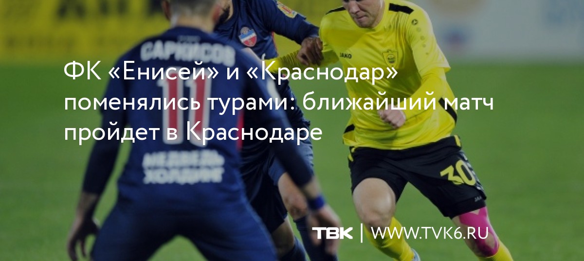 ФК «Енисей» и «Краснодар» поменялись турами: ближайший матч пройдет в Краснодаре