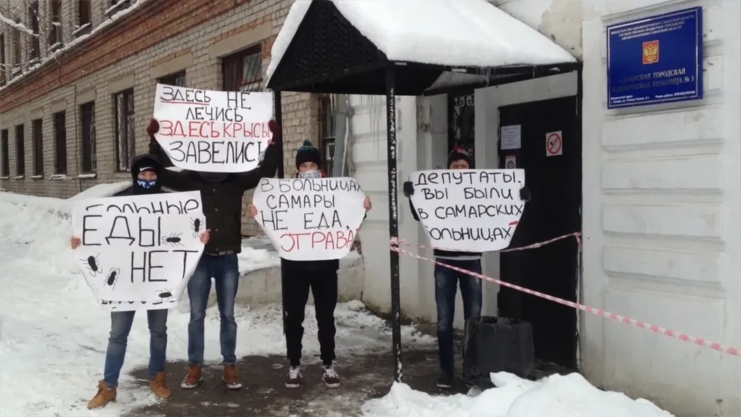 Делали постановочные видеоролики с тараканами в больницах, с недовольными пациентами, с пикетчиками.