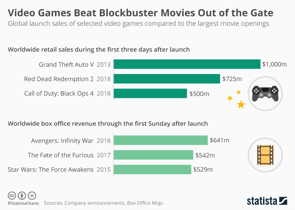 У игрового рынка, который уже сейчас растет высокими темпами (увеличился на 59% в 2013–2017 годах), появятся новые возможности для расширения. Технологические компании пытаются превратить видеоигры в стриминговые сервисы по аналогии с Netflix и Spotify, пишет WSJ. Microsoft и Google работают над тем, чтобы сделать высокобюджетные игры доступными с любых устройств, подключенных к интернету. Для геймеров это хорошая новость — так им не придется тратить сотни долларов на игровые приставки. А вот другие развлекательные сервисы эта инициатива не может обрадовать — есть риск, что стриминг видеоигр заберет у них часть аудитории. И у этого опасения есть основания — например, последний хит, Red Dead Redemption 2 только за первые три дня продаж выручил больше денег ($725 млн), чем блокбастер «Мстители: Война бесконечности» ($641 млн). Правда, с технической точки зрения стриминг видеоигр — задача не из простых. В отличие от фильмов или музыки, игры — это интерактивный контент, в котором задержка даже на долю секунды может стоить игровой жизни.