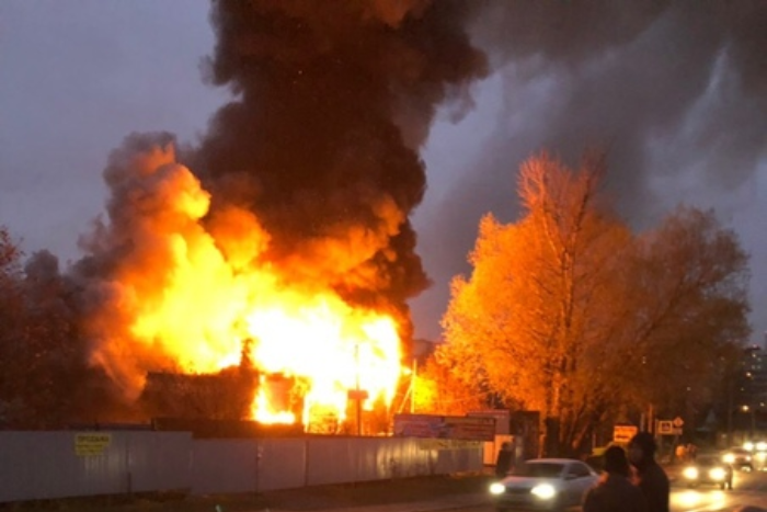 Рядом с метро «Девяткино» загорелся шиномонтаж и жилой дом