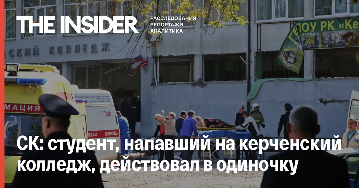 Владислав Росляков, убивший 20 человек в колледже в Керчи, действовал в одиночку. Об этом сообщил Следственный комитет.