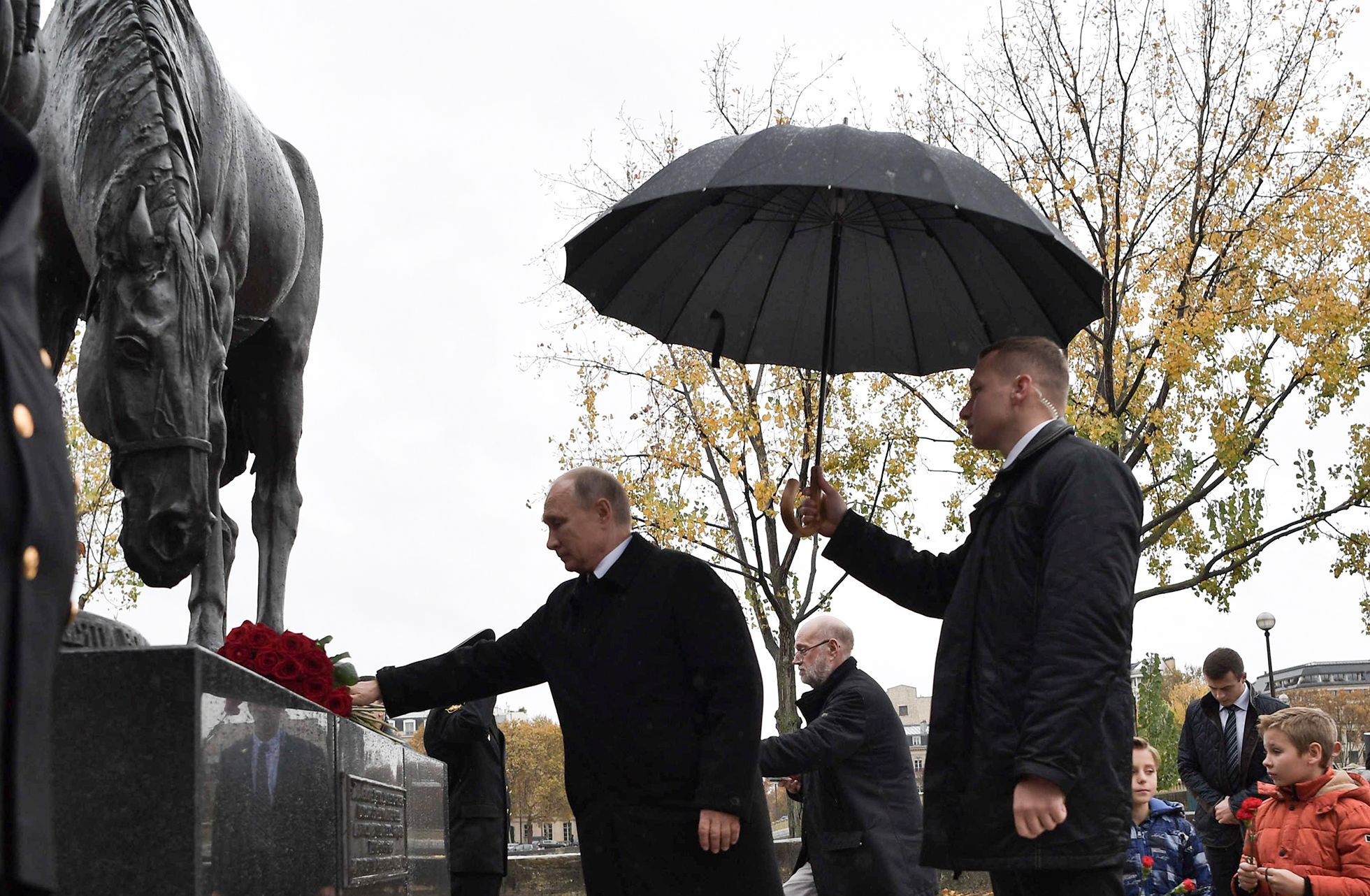 Президент России у памятника солдатам Русского экспедиционного корпуса во Франции. Фотография с церемонии памяти жертв Первой мировой
