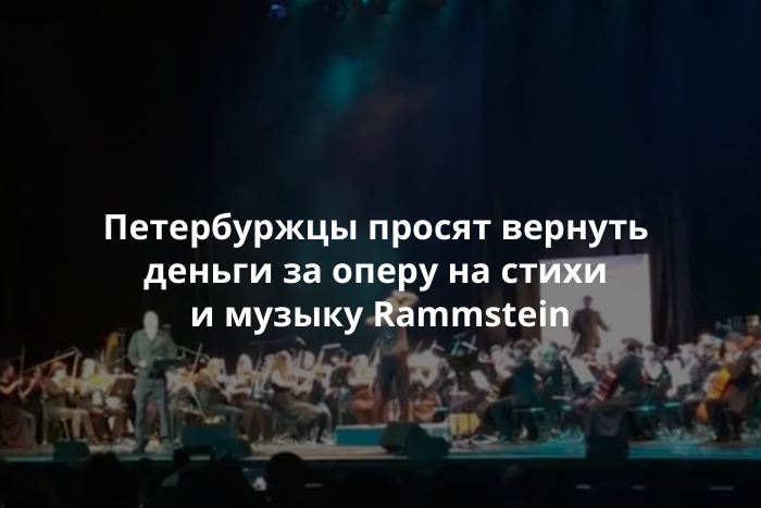 Петербуржцы пожаловались на организацию оперы Mein Herz Brennt на стихи и музыку Rammstein, которая прошла в ДК им. Ленсовета 9 ноября. Как сообщил «Бумаге» один из зрителей, представление продлилось только 1,5 часа вместо заявленных 136 минут. По его словам, многие не ожидали сокращения программы и после ее окончания остались на своих местах, думая, что это антракт.