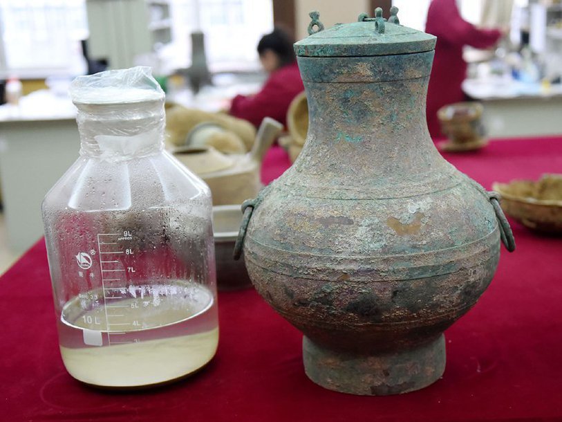 Найденный в гробнице сосуд и его содержимое Li Anshe / Xinhua News Agency Агентство Синьхуа сообщило, что при раскопках гробницы в городе Лоян археологи обнаружили бронзовый сосуд возрастом около двух тысяч лет. Жидкость, находившаяся в сосуде, сохранилась в весьма большом объеме – более трех с половиной литров. Химический анализ пока не проводился, но внешний вид, запах и контекст находки говорят, что это рисовое вино – популярный напиток Древнего Китая, использовавшийся и в погребальных ритуалах.