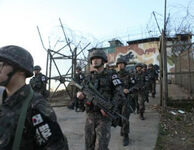 В Пханмунджоме после отвода вооружений и сноса караульных постов остаются по 35 невооруженных военных каждой из сторон. В деревне проводятся переговоры по поводу объединения Кореи.