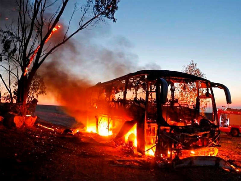 Ранее армейская пресс-служба сообщила, что одна из выпущенных ракет попала в автобус. В этом случае злоумышленники использовали противотанковую ракету. В итоге ранения получил 19-летний юноша. Судя по опубликованному снимку, автобус полностью сгорел.