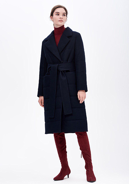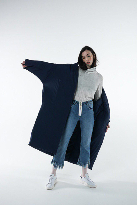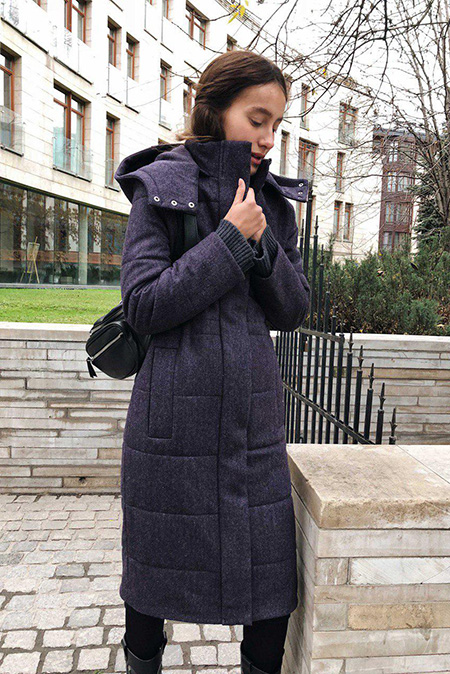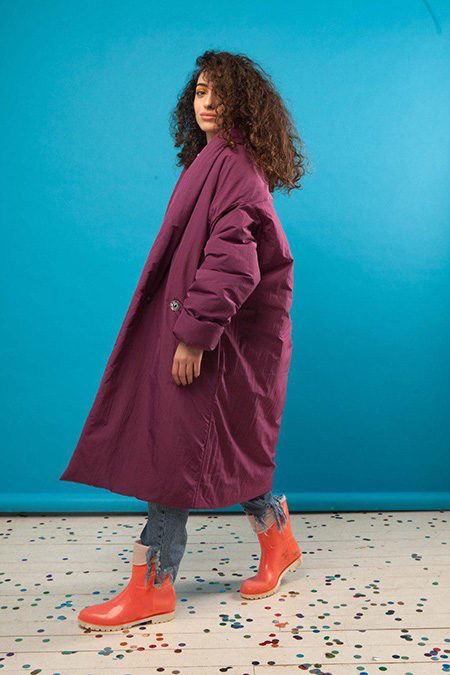 В зимней коллекции вместо пуховиков дизайнер Дарья Самкович выпустила стеганое пальто-халат из европейских тканей с утеплителем Shelter, который выдерживает холод до −10 градусов. При ветреной погоде лацкан пальто можно поднять и застегнуть на пуговицу.