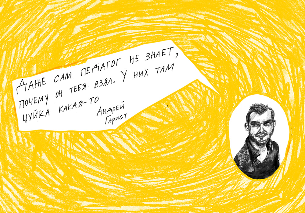 Андрей Гарист. Даже сам педагог не знает, почему он тебя взял. У них там чуйка какая-то.