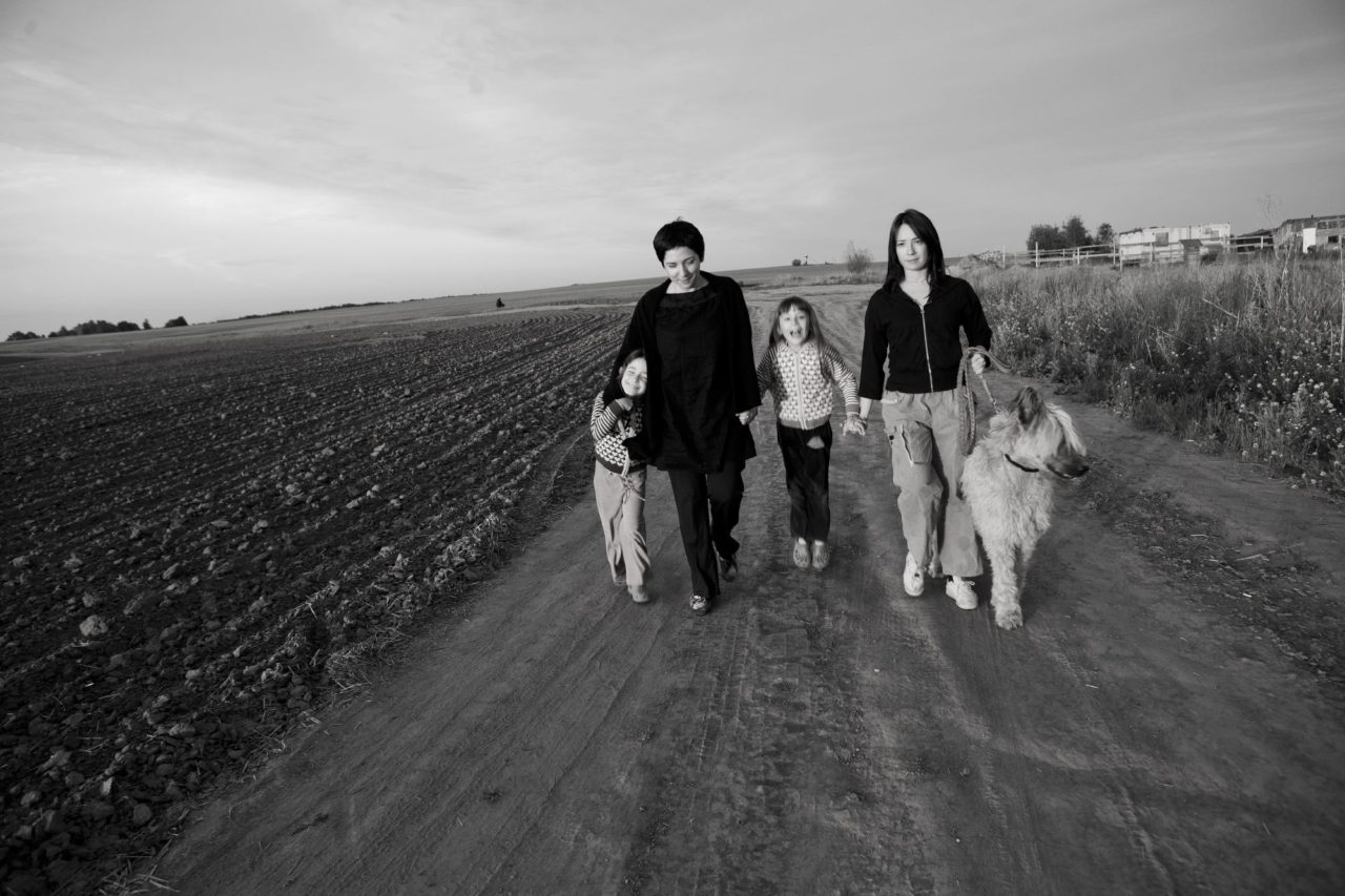 Катя и Чулпан с дочерьми Ариной и Асей и псом Данхиллом на даче. 2009 г.Фото: Ольга Павлова — Про поколение 40-летних, у которых были огромные шансы и на которых возлагались большие надежды, и что со всем этим стало, как мы все это реализовали.