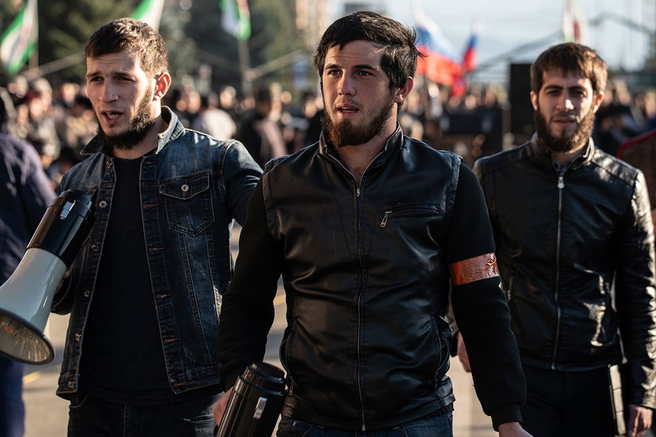Магас, молодая столица Ингушетии, — город со странностями. На пустых улицах не встретишь современных автобусов, зато остановки оборудованы электронными библиотеками и кондиционерами. Подсвеченные скамейки и будки таксофонов раздают вай-фай, но только не в дни протестов, когда в городе, якобы из-за неполадок, разом отключили и мобильный, и — частично — домашний интернет. Напротив здания правительства республики построена вайнахская оборонительная башня высотой 99 метров. Эти башни — правда, гораздо меньшего размера — в горах Чечни и Ингушетии составляют гордость обоих народов. Схожая культура объединяет, но и порождает соперничество. Не успела подняться ингушская башня-небоскрёб в неотрадиционном стиле, как Кадыров объявил о строительстве в Грозном четырёхсотметровой башни — пониже, чем в Москве, но куда выше, чем у соседа.