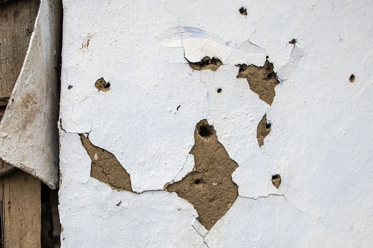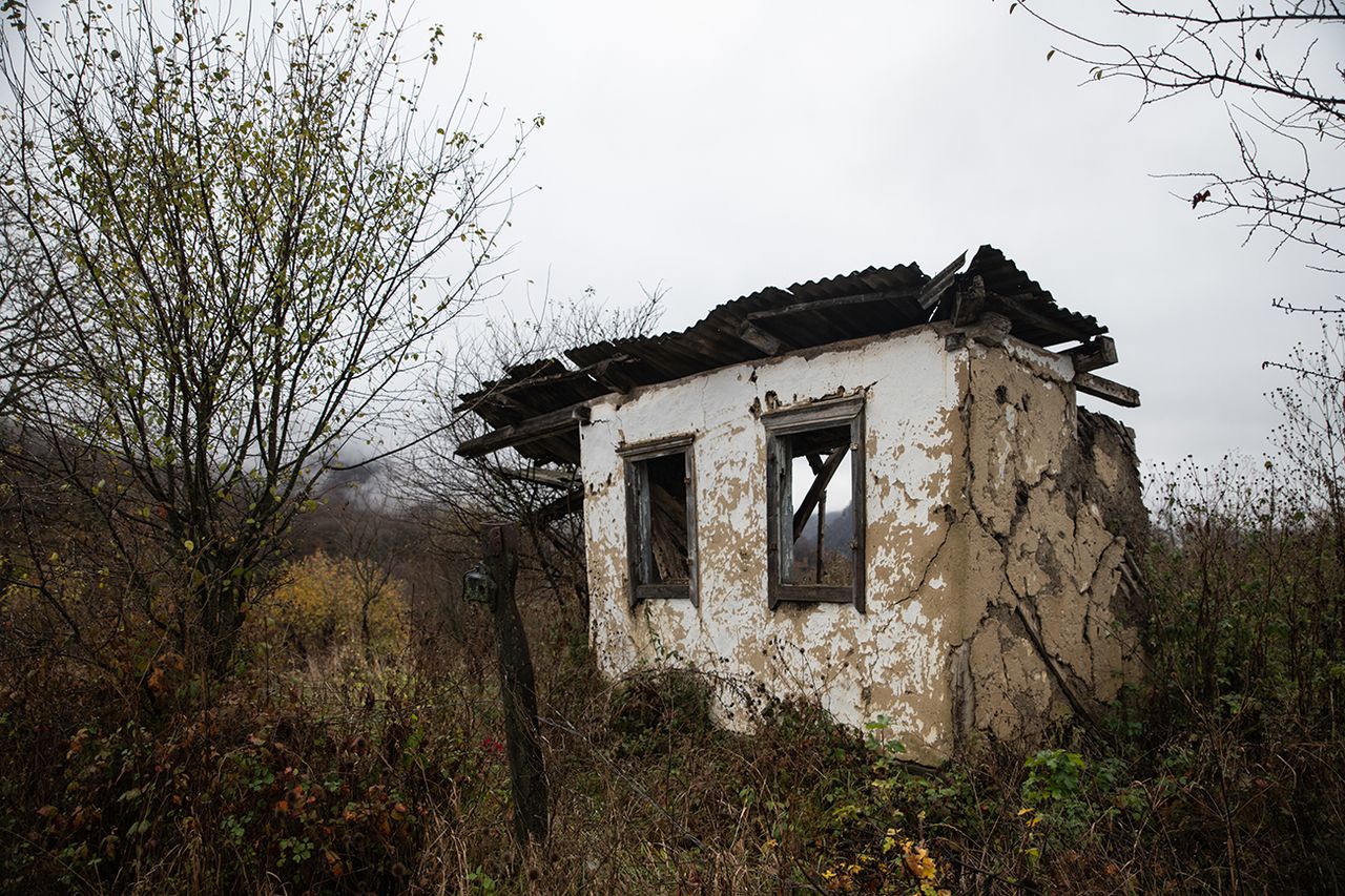 Под притолокой — ласточкины гнёзда. Птицы влетают сквозь разбитые окна и простреленную крышу. Зимой военные закрывали дорогу на два месяца. Когда жители вернулись, то увидели свою мебель, раскиданную по селению, да свежие дыры от пуль и осколков. У Магомеда даже дверь унесли. Что здесь произошло, никто не знает, но поговаривают, что сделано это специально — дабы село опустело окончательно.