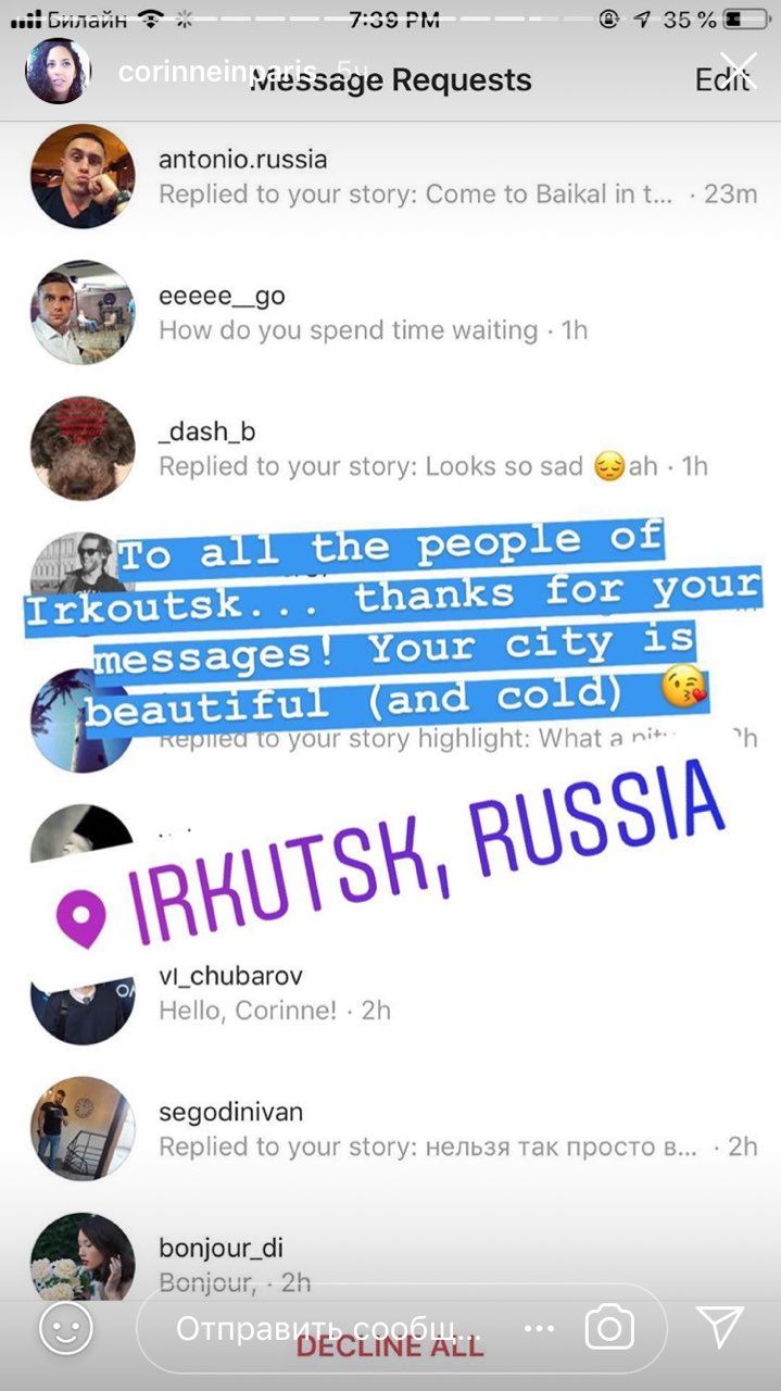 Жители Иркутска и другие русскоязычные пользователи как могут поддерживают застрявших в России работников дома моды — пишут им в инстаграм, зовут посмотреть на Байкал. Французы благодарят за гостеприимство: «Спасибо всем жителям Иркутска за ваши сообщения. Ваш город очень красивый (и холодный) 😘».
