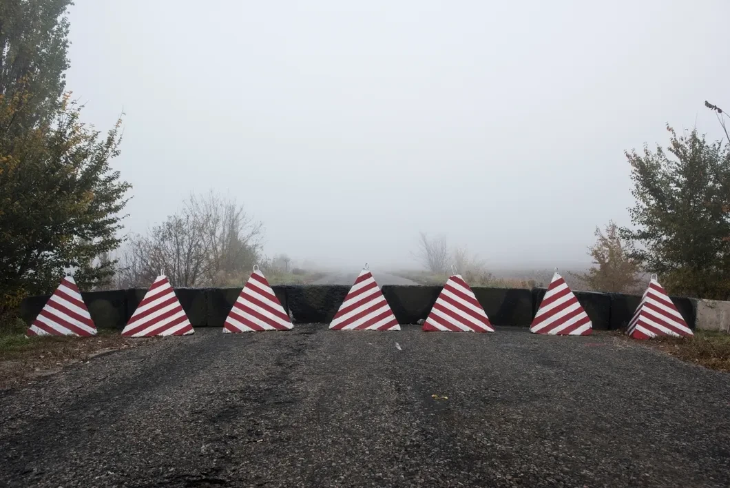 Луганщина осенью тонет в тумане. В белой дымке можно не заметить с десяток окрашенных бело-красными линиями бетонных пирамид, которыми перекрыли дорогу. За ними продолжается асфальт, но нет ни авто, ни пешеходов. Это один из участков дороги T-1307, которая соединяет населенные пункты Луганской области и частично проходит по государственной границе с Российской Федерацией.