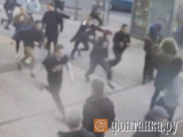 «Фонтанка» опубликовала записи камер наблюдения, на которых видна толпа подростков. При этом оружие на видео редактору «Бумаги» разглядеть не удалось.