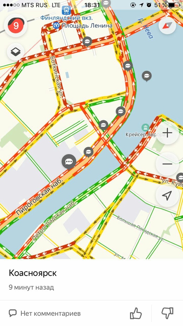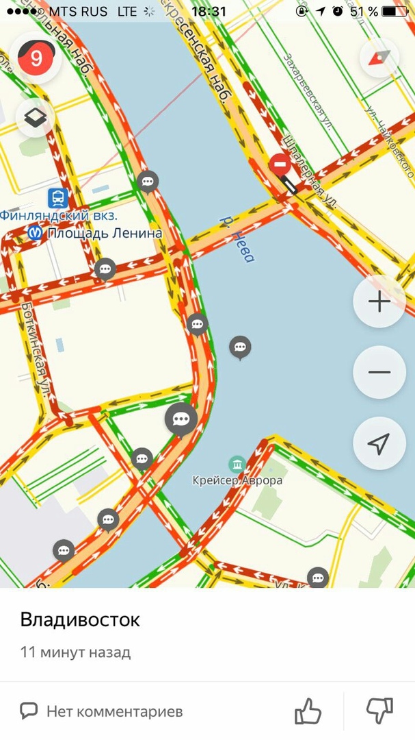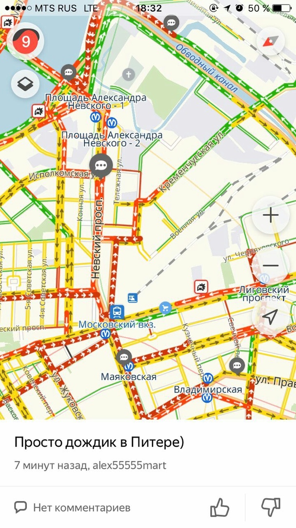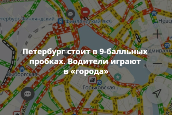 Движение осложнено на Невском и Лиговском проспектах, в районах станций метро «Петроградская» и «Чернышевская», а также у Финляндского и Московского вокзалов.