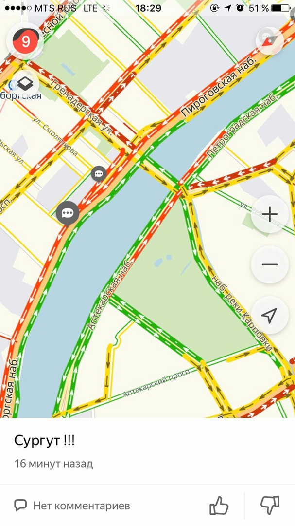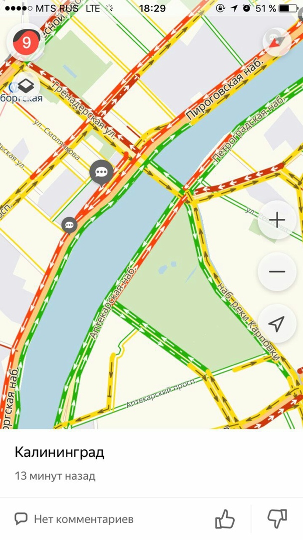 Вечером 13 ноября в центре Петербурга образовались 9-балльные пробки, следует из сервиса «Яндекс.Карты».