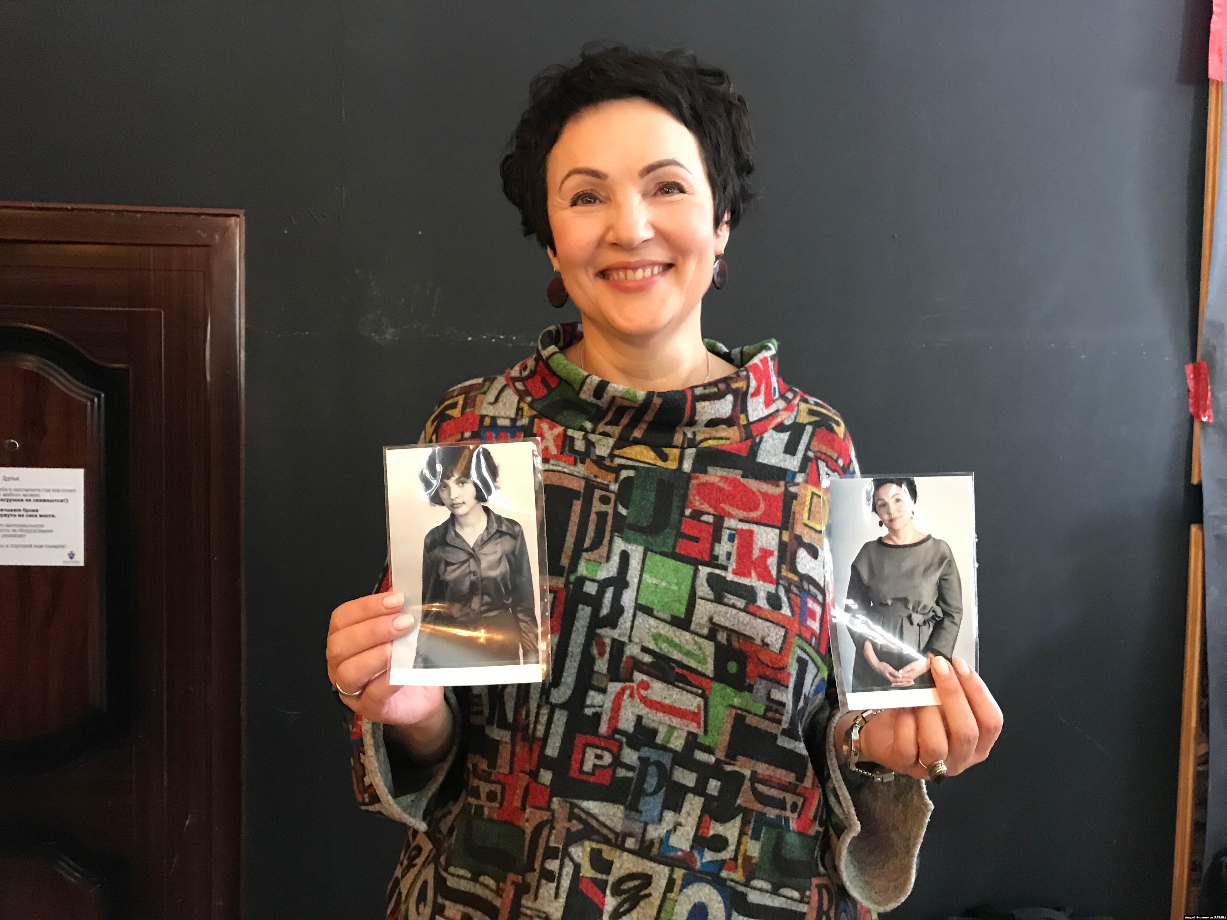 Галина рассматривает два снимка и улыбается.