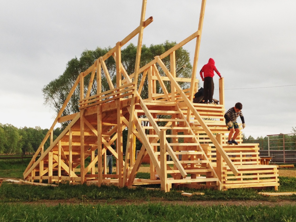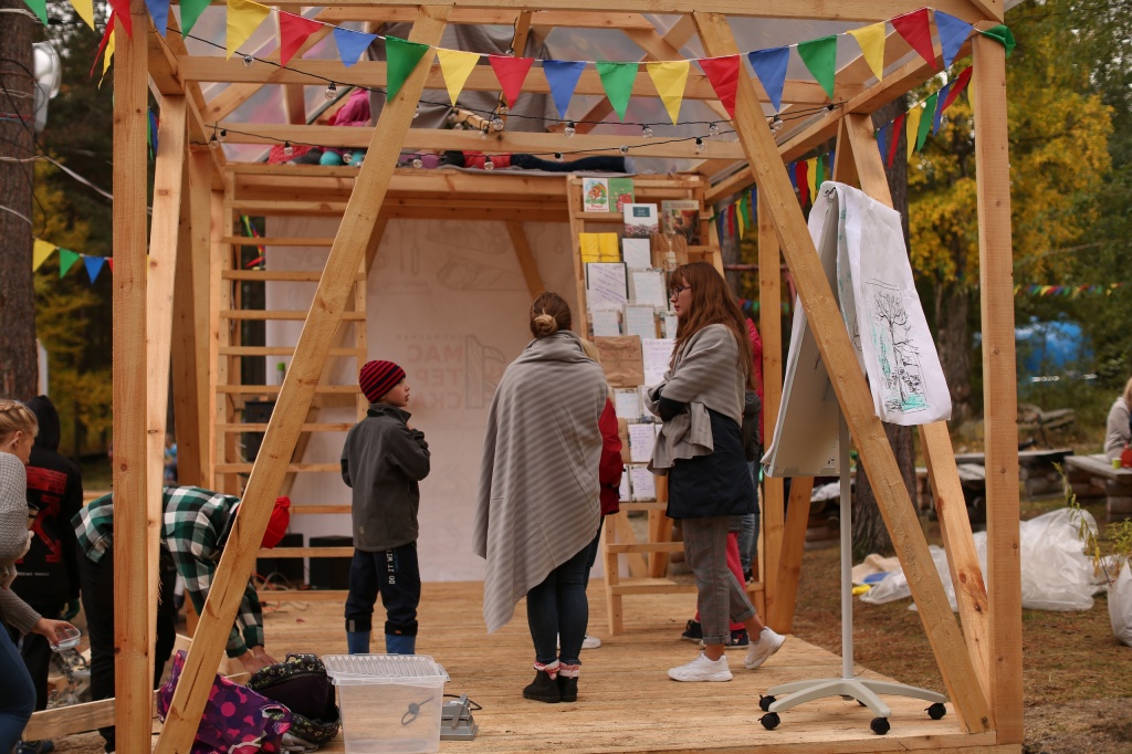2. Городская мастерская в городе Полярные Зори (Мурманская область). Специалисты организовали столярную мастерскую с образовательными и развлекательными событиями. Удалось создать павильоны и конструкции, которые теперь остались во дворах и на детских площадках.